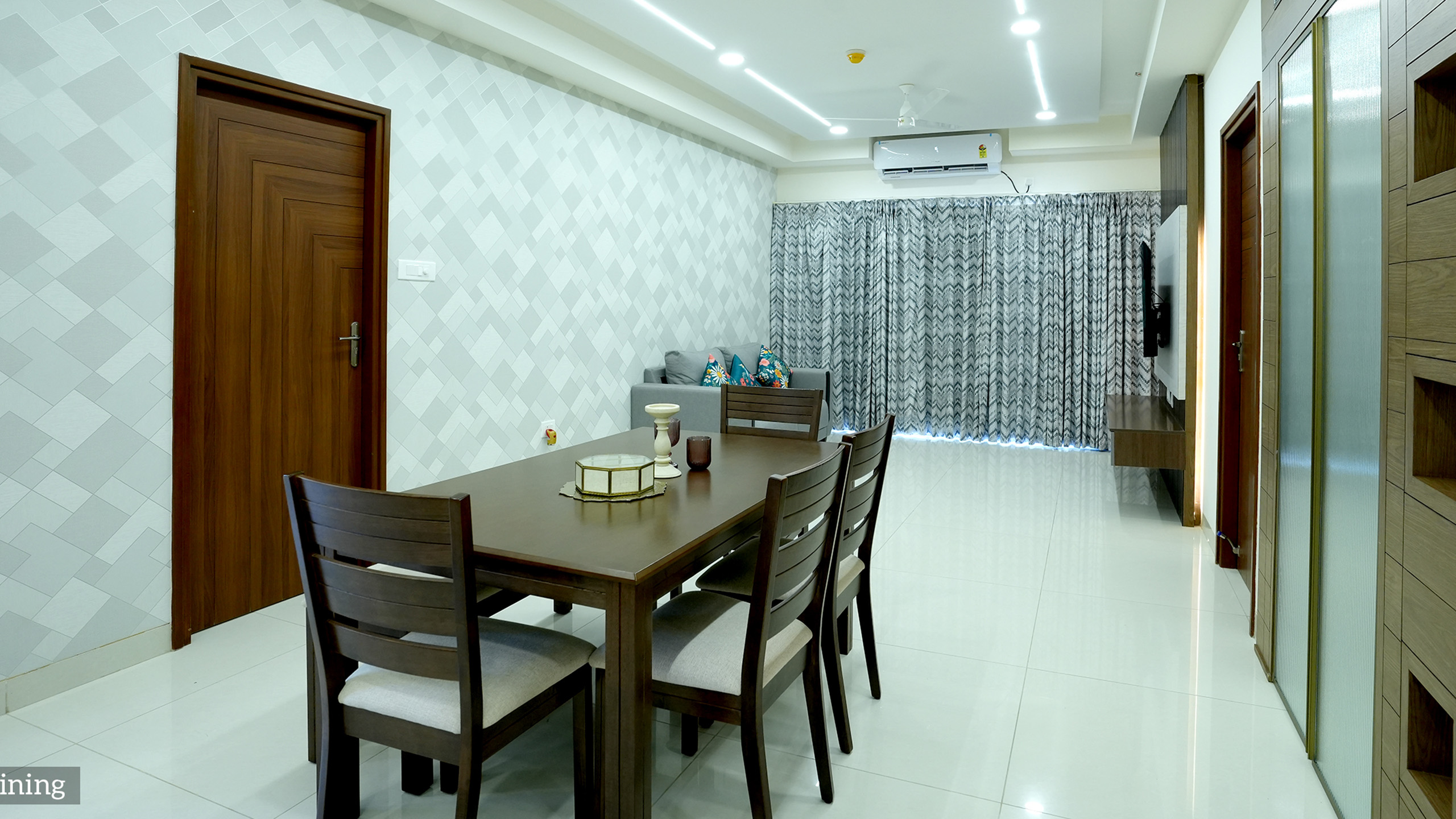a) Drawing, Dining, Living, Bedrooms, Kitchen: 800 X 800 mm size double charged vitrified tiles of reputed brand with spacer joint.