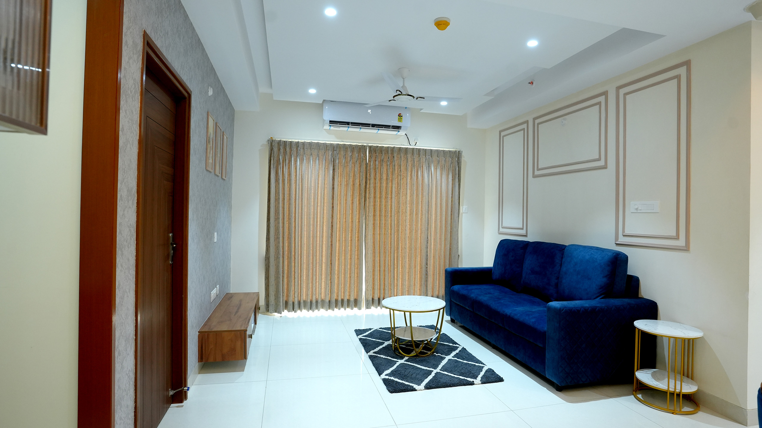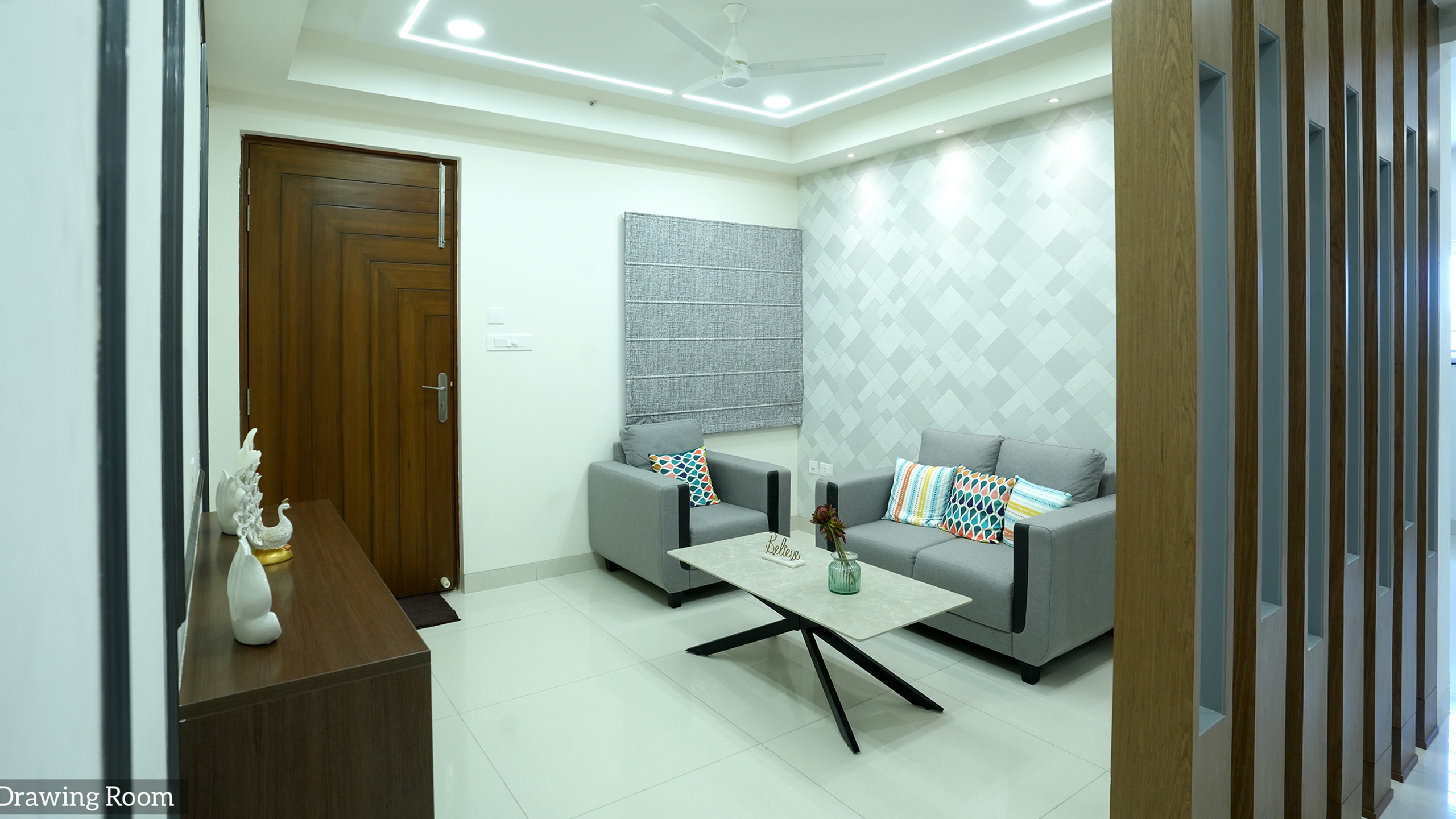 a) Drawing, Dining, Living, Bedrooms, kitchen and Balcony: Smoothly finished with putty and acrylic and emulsion paint.