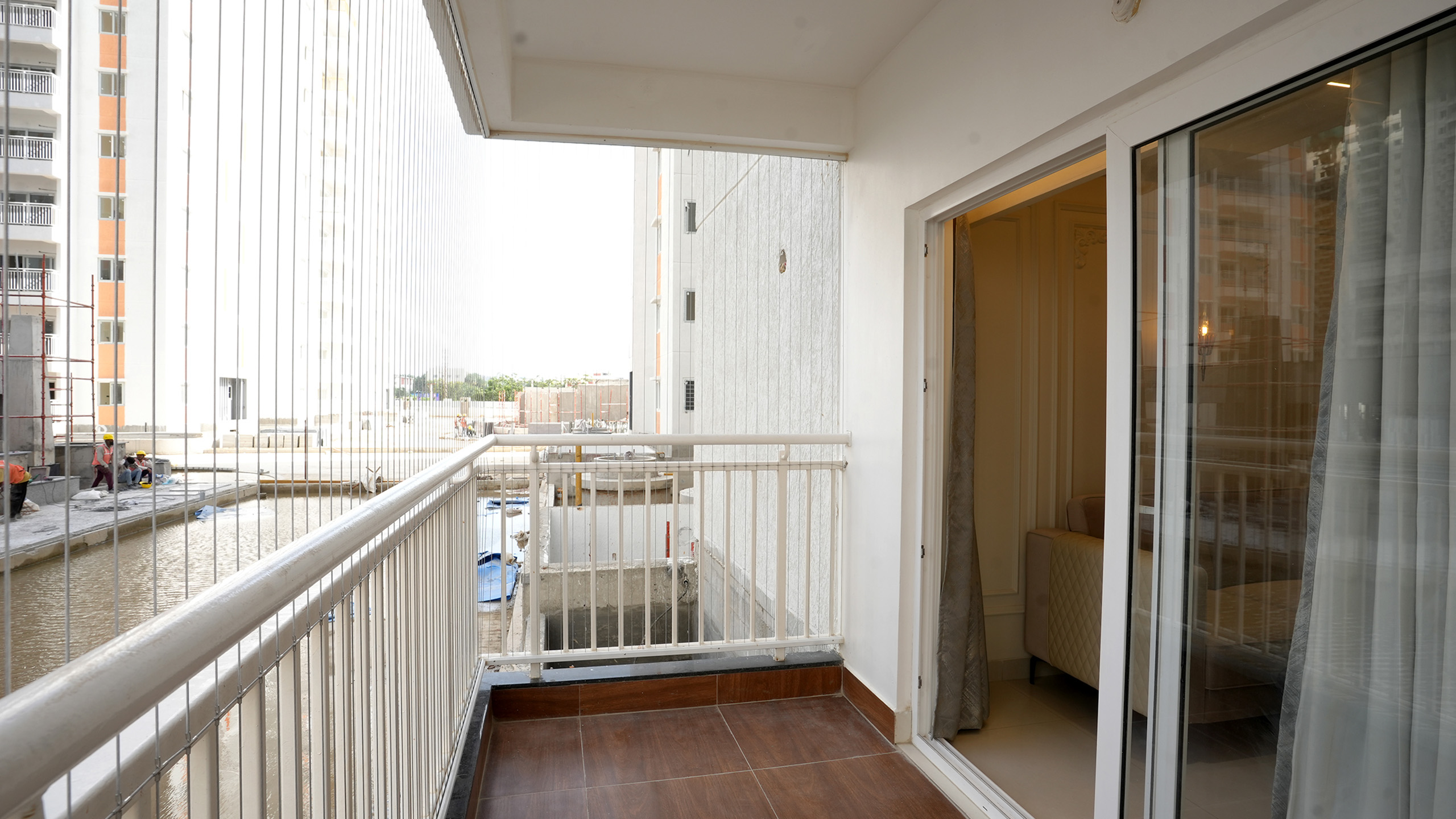 d) Balconies: Aluminum/UPVC glazed french sliding doors with mosquito mesh provision