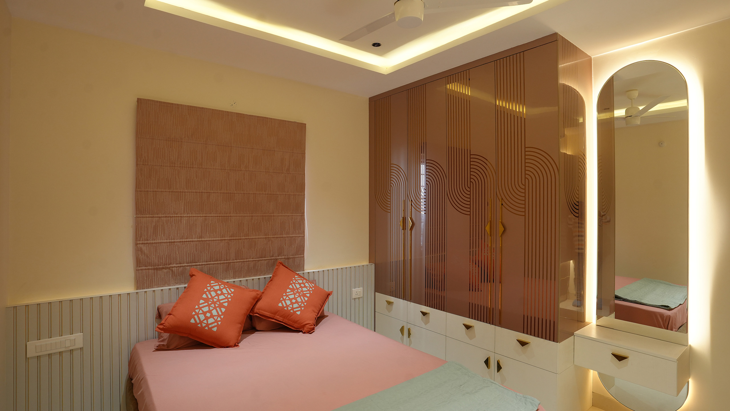 a) Main Door: Hard wood frame, finished with melamine spray polish. Teak finished flush shutters with reputed hardware