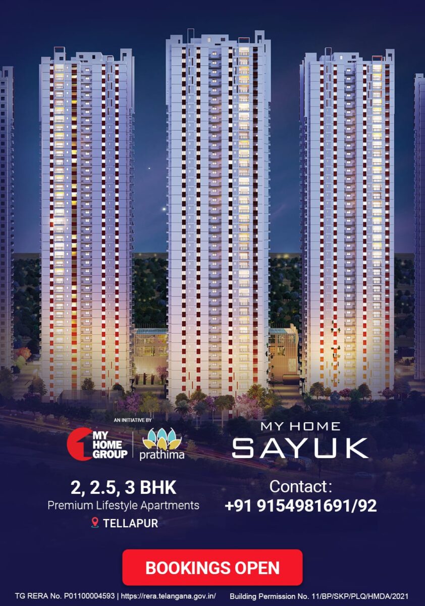 Established in a thriving location, Tellapur, My Home Sayuk has the connectivity that beams with magic, ease of transport and well-planned with wide roads to Hyderabad’s most happening spots – The Wipro Junction, Gachibowli and easy access to ORR and Airport, High-end Restaurants, Malls, Schools and many more..